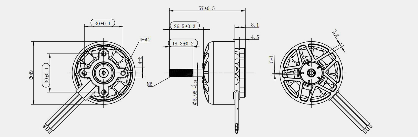 | Max. P (W) | Voltage (V) | Max. I. A) | KV | No-load Current (A) | Resistance (mΩ) | Poles | Motor Dim. (mm) | Stator Dim. (mm) | Mounting (mm) | N.W. (g) | Prop. (inch) | ||||||||||||||||